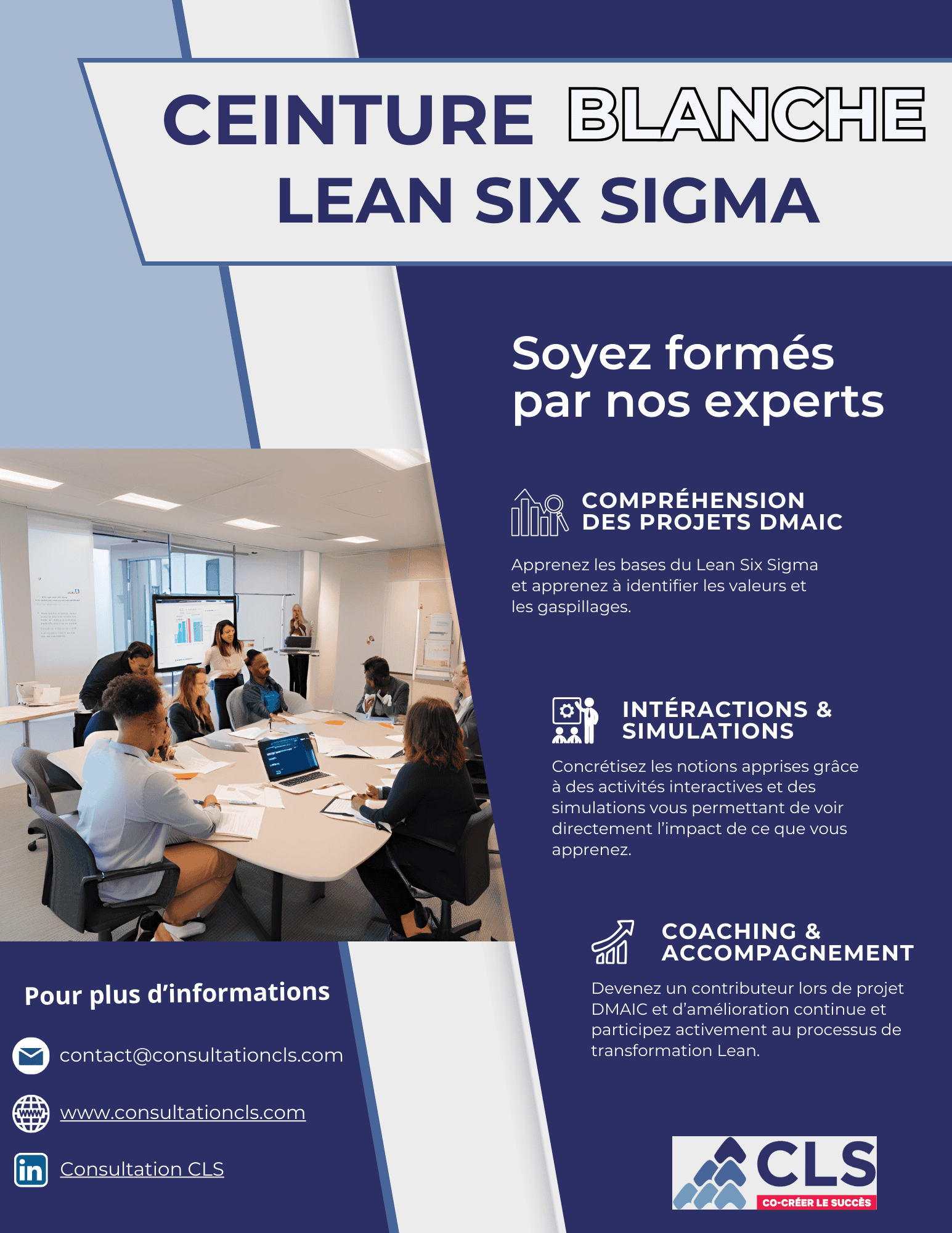 Public cible : Les employés et les gestionnaires désirant prendre en charge des projets d’amélioration continue Lean Six Sigma